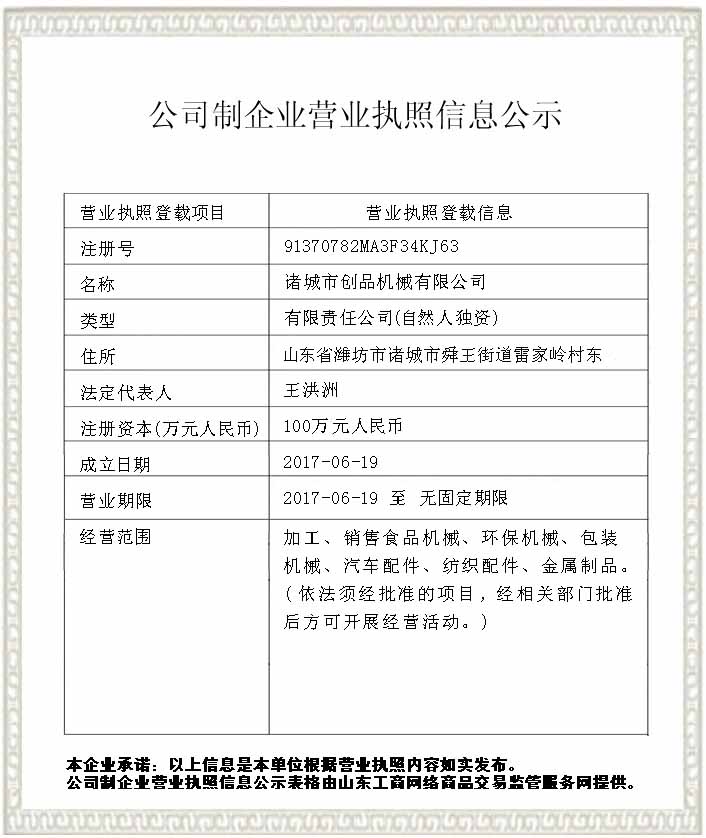 諸城市創品機械有限公司位于食品機械生產基地——山東諸城市,是一個集科研、制造、銷售于一體的不銹鋼食品機械生產企業。經過多年的努力和創新,為廣大客戶提供了不計其數的可靠設備,在同行業中享有盛譽。
